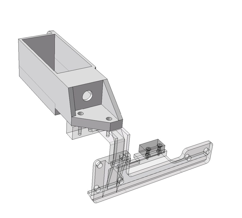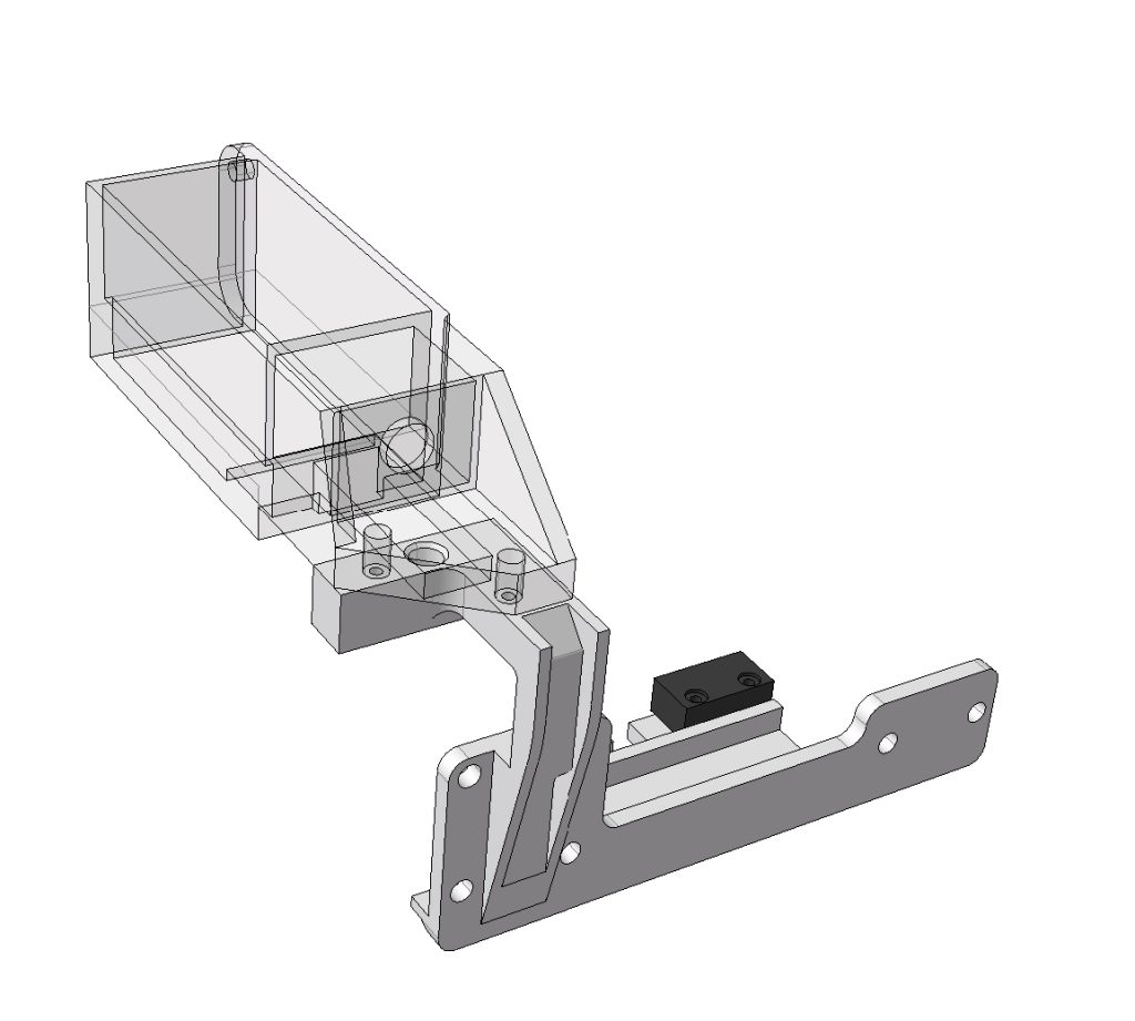 사진엔 이미 센서를 고정하는 지그가 있는데, 가이드에 센서를 고정하는 지그는 아래 그림과 같이 모델링을 하고 3D 프린터로 2파트로 나눠 뽑고 조립을 했어요.
